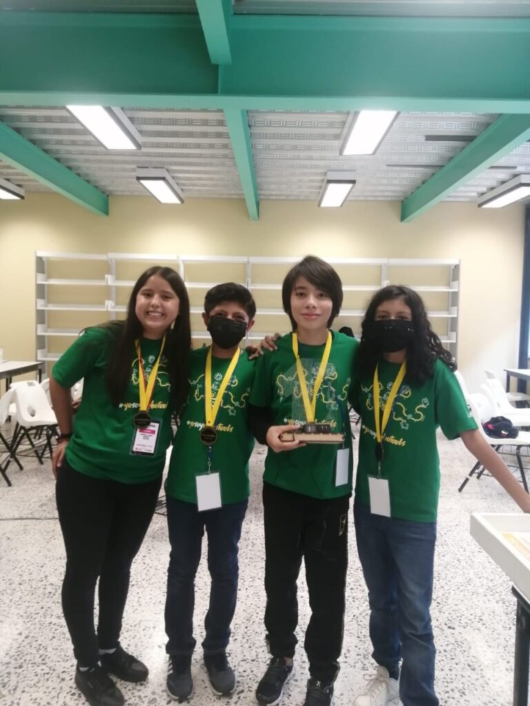 Leira Miranda Gallegos Ochoa, Ian Percival Solís Guzmán y David Hernández Medina así como su asesora Daniela Saray Morán Ochoa, integran el equipo ganador, el cual tuvo una destacada participación y lograron las mayores puntuaciones durante las cuatro rondas de la competencia.