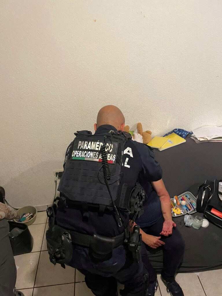 Al arribar, localizaron a la persona consciente, orientada y en posición sedente, con una herida corto-contusa de aproximadamente dos centímetros y con hemorragia activa, por lo que de inmediato se procedió al control de la misma.
