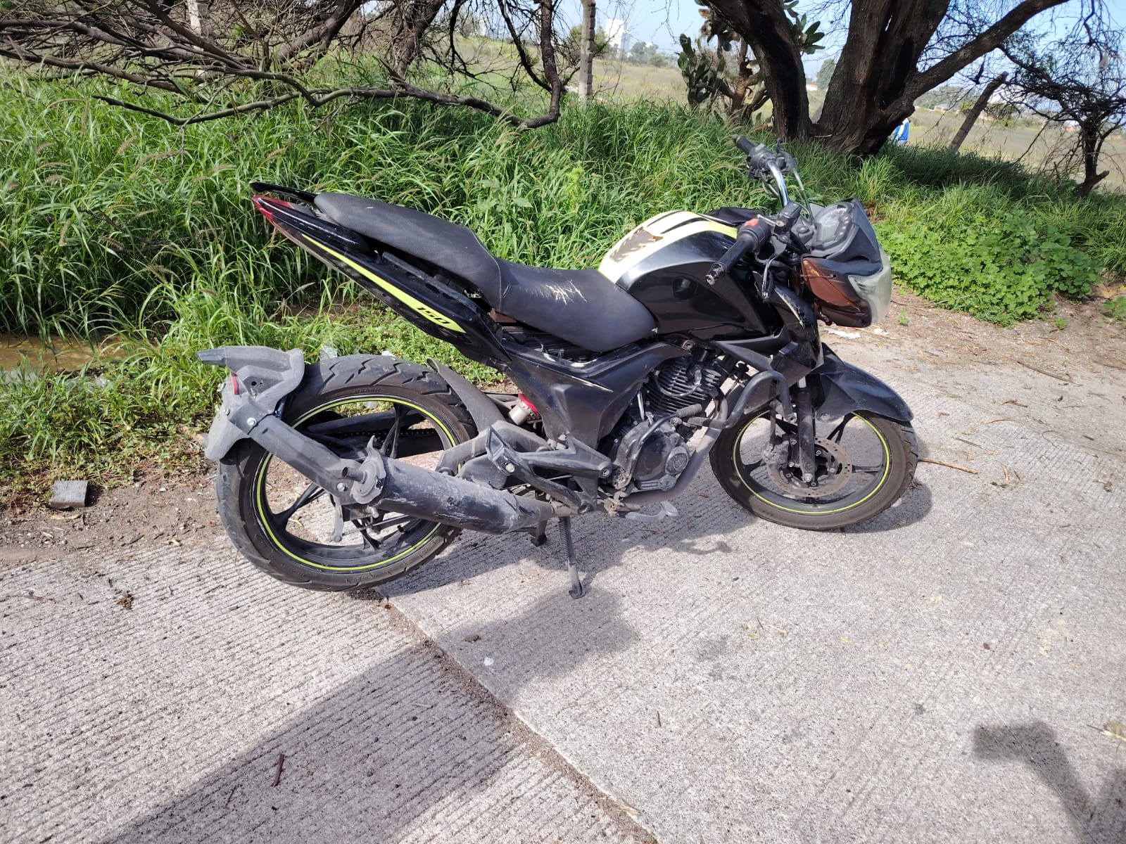 Patrullando sobre Avenida San Margarita Flores García y cruce con calle Jesús Rivera Franco, en el fraccionamiento Misión de Santa Lucía, observaron una motocicleta de la marca Italika en color negro, la cual no portaba placas de circulación y se encontraba mal estacionada.