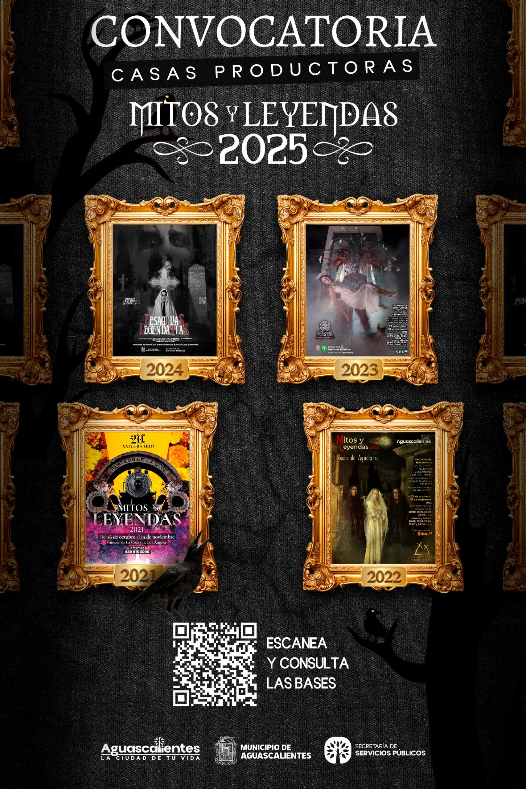 La Secretaría de Servicios Públicos del Municipio de Aguascalientes informa que a partir del 25 de julio queda oficialmente abierta la convocatoria para seleccionar a la casa productora responsable del desarrollo de la edición 2025 del programa cultural “Mitos y Leyendas”, evento escénico con sede en el histórico Panteón de la Cruz.