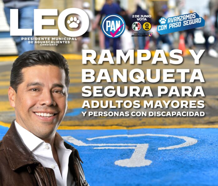 Leo Montañez, abanderado de la coalición Fuerza y Corazón por México a la presidencia municipal de Aguascalientes, aseguró que dará continuidad a la construcción de más rampas y banquetas seguras para la mejor movilidad de adultos mayores y personas con discapacidad.