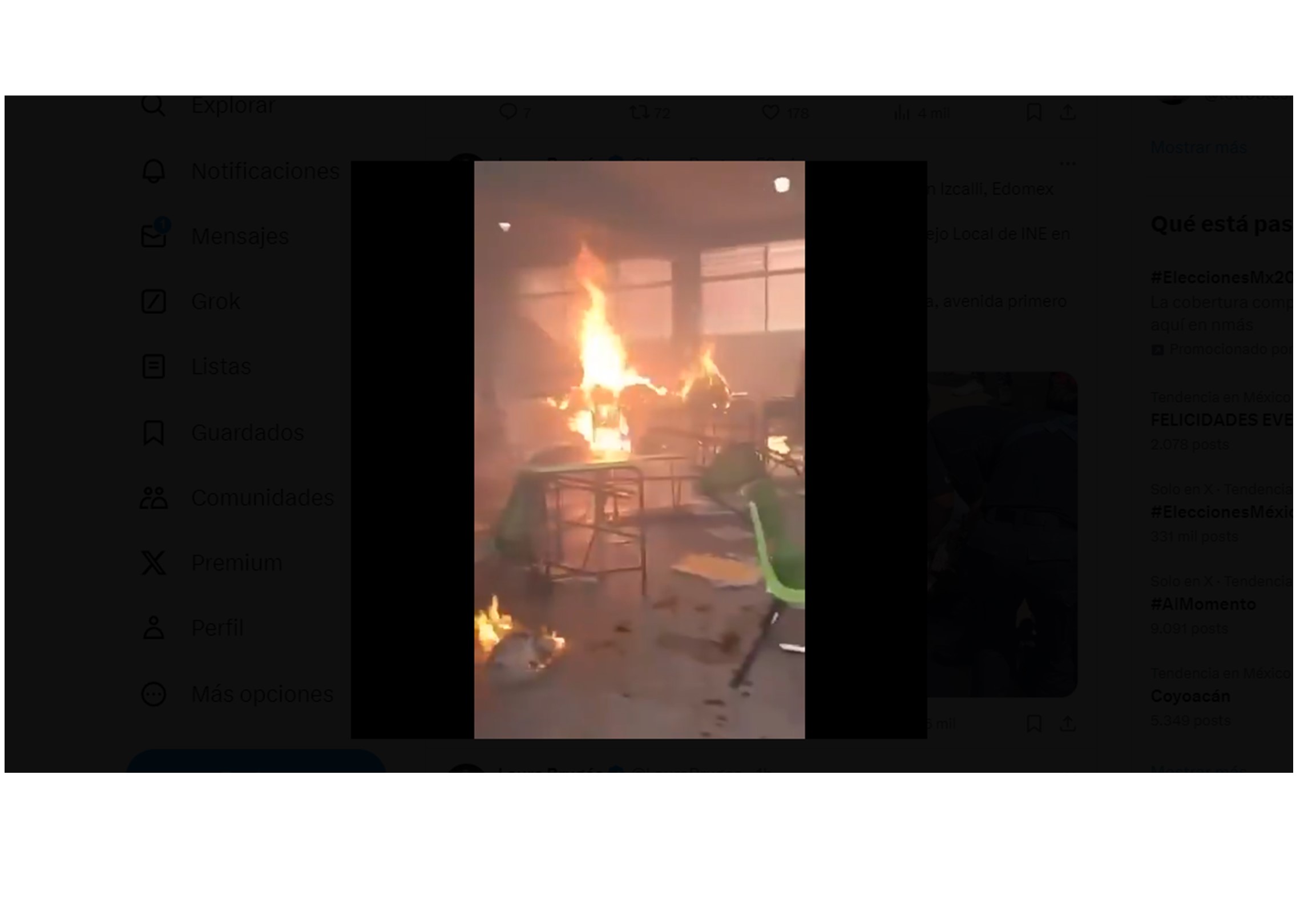 Alrededor de las 16:00 horas, se reportó la quema de casillas en Cuautitlán Izcalli, Estado de México.