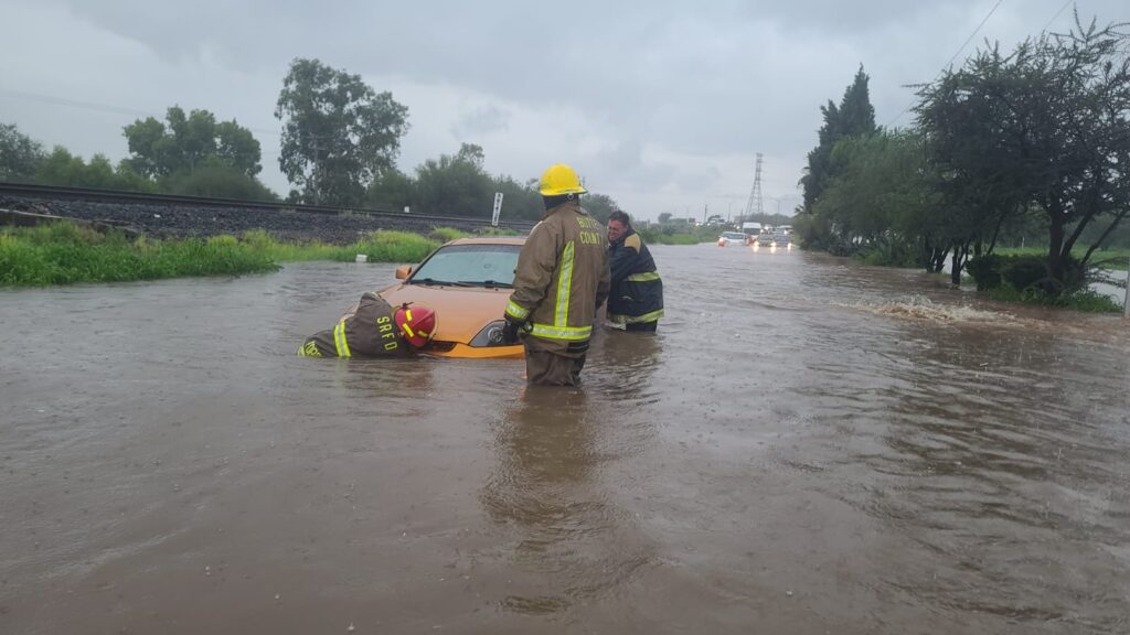 La Coordinación Municipal de Protección Civil de Pabellón de Arteaga pide a la población evitar cruzar por encharcamientos durante la presencia de tormentas fuertes.