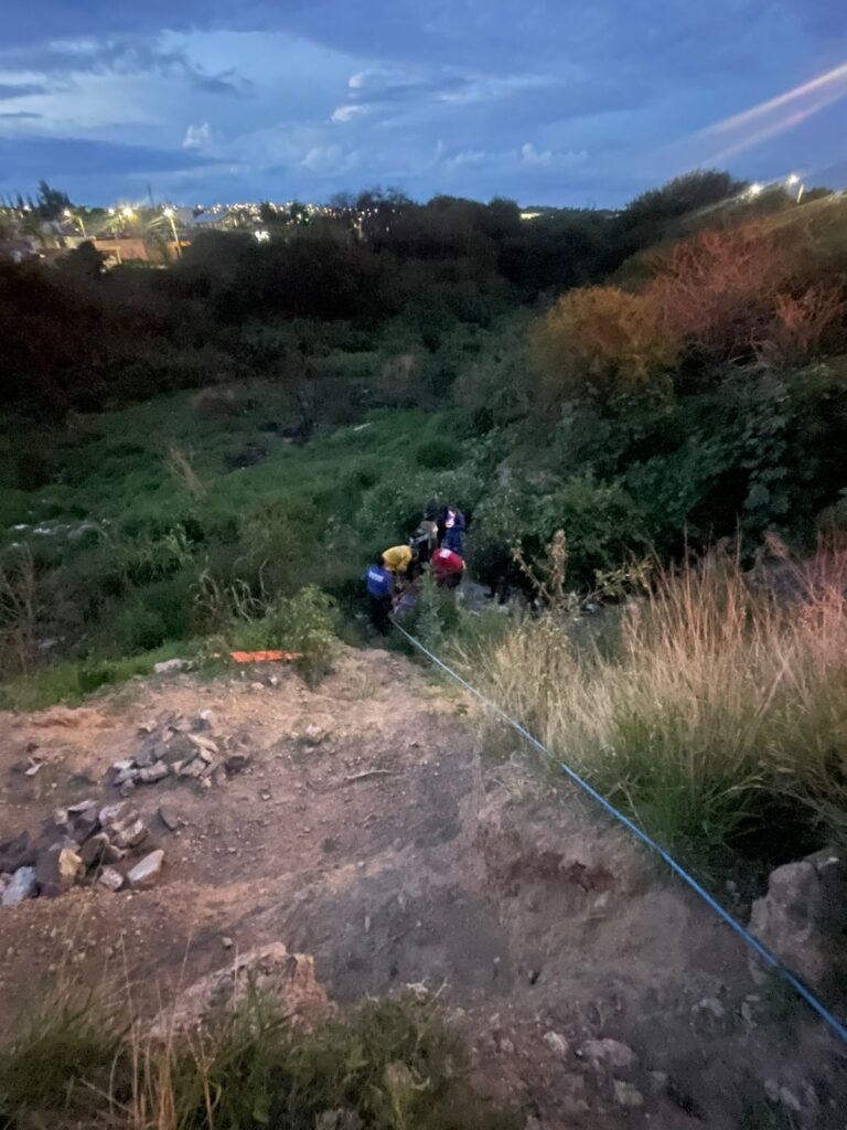 Debido a lo anterior elementos del cuerpo de Bomberos del Municipio de Aguascalientes, comenzaron con las maniobras de extracción con equipo de cuerdas y canastilla.