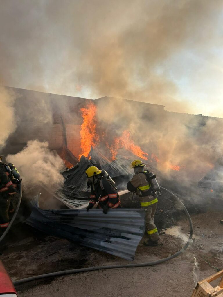 Finalmente el incendio fue sofocado resultando consumido dos compresores, un tanque de gas L.P de 300 KG aproximadamente, dos máquinas de cierra para corte, láminas, candado, 1 horno (cuarto de curado), así como dos vehículos.