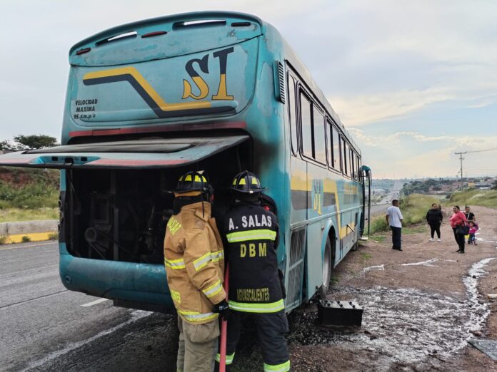 Al arribar observaron un camión de transporte de personal con razón social Auto Transportes del Centro el cual se encontraba incendiandose del motor, por lo que los elementos comenzaron con las maniobras de control y extinción del fuego, minutos más tarde el incendio fue sofocado por los vulcanos resultando dañados el motor, el sistema eléctrico y tapas de la carrocería.