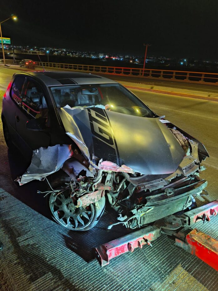 Tras el impacto, el automóvil continuó su trayectoria aproximadamente 29 metros, chocando posteriormente su ángulo delantero derecho contra el barandal metálico del puente elevado, lo que provocó que el vehículo girara cerca de 90 grados hacia su lado izquierdo, para finalmente colisionar nuevamente su parte frontal contra el barandal metálico, quedando detenido en el lugar.