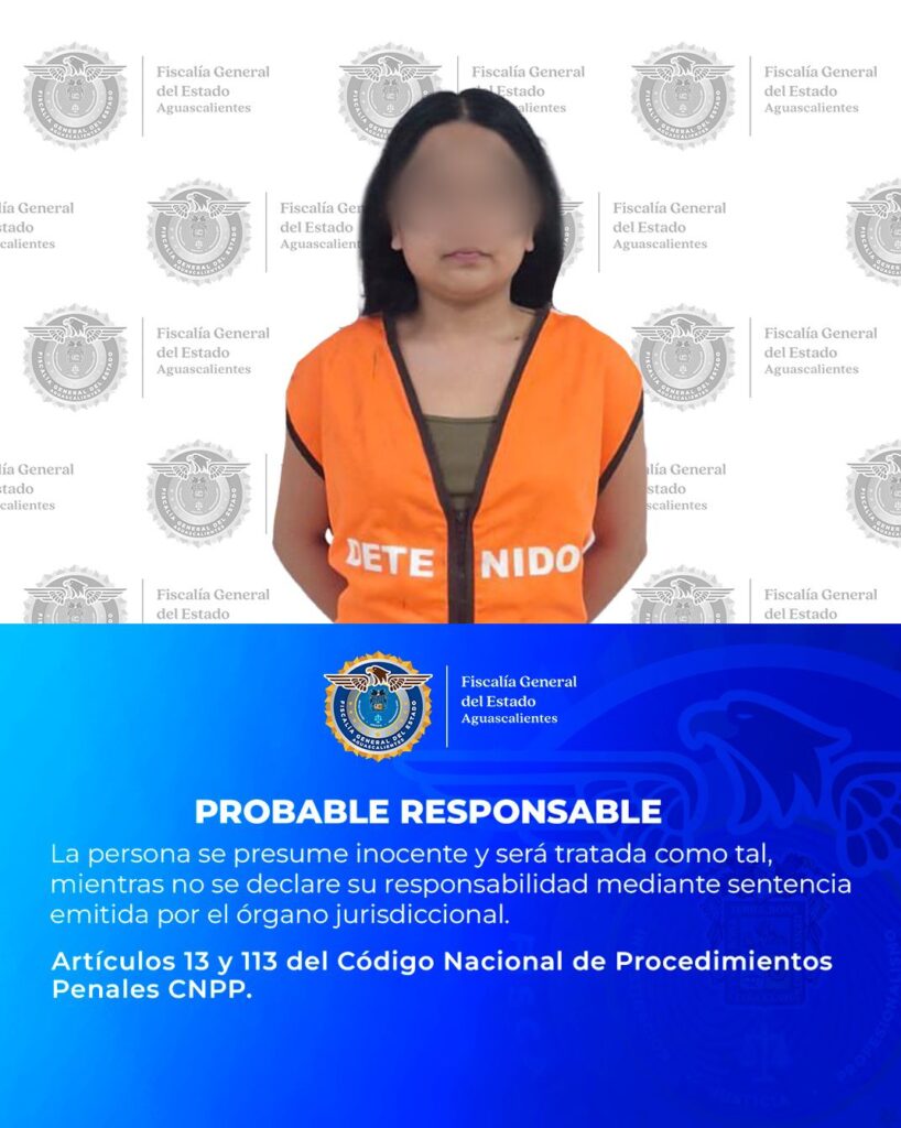La Fiscalía General del Estado de Aguascalientes, a través de la Agencia de Investigación Criminal, logró la cumplimentación de una orden de aprehensión en contra de una mujer identificada como Tifany Michell “N”, quien es señalada por su presunta responsabilidad en el delito de Violencia Familiar.