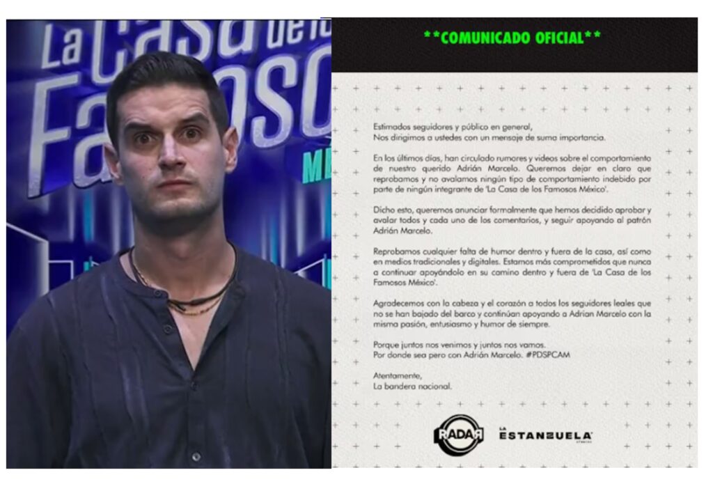 “En los últimos días, han circulado rumores y videos sobre el comportamiento de nuestro querido Adrián Marcelo. Queremos dejar en claro que reprobamos y no avalamos ningún tipo de comportamiento indebido por parte de ningún integrante de La Casa de los Famosos México”.