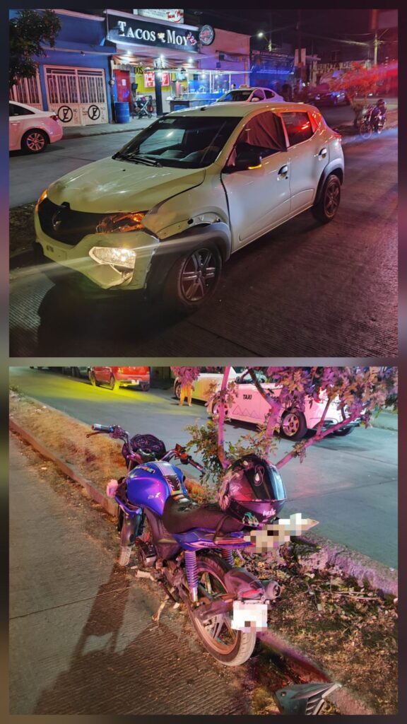 Durante la medianoche, policías viales atendieron un choque tipo ángulo entre un vehículo y una motocicleta registrado en el cruce de la Avenida Siglo XXI y la Avenida San Francisco de los Viveros, en el fraccionamiento Ojocaliente III, el cual dejó a una persona lesionada.