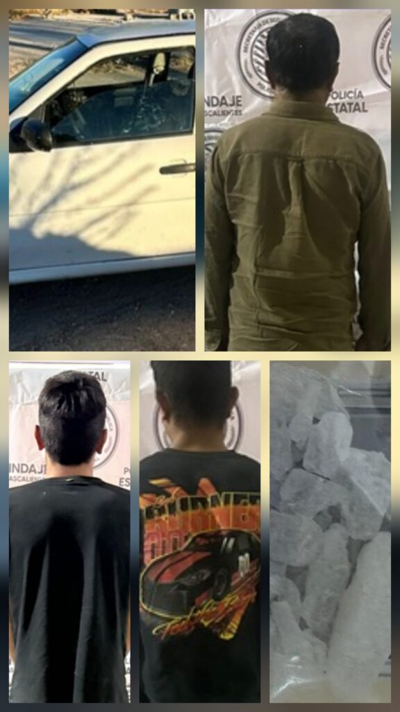 Uniformados de la Secretaría de Seguridad Pública del Estado lograron la detención de tres personas que pudieran estar involucradas en un hecho de alto impacto ocurrido en territorio del municipio de Jesús María, a quiénes durante su captura se les aseguró sustancia granulada con las características propias del cristal, fueron puestos a disposición de la autoridad ministerial.