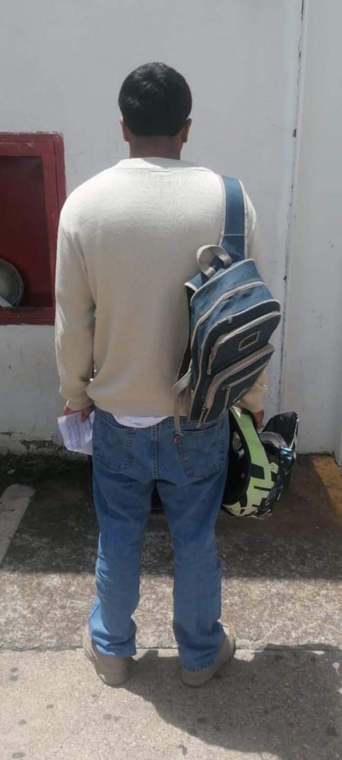 El individuo dijo responder al nombre de José “N” de 19 años de edad, al momento de verificar el permiso para circular sin placas que portaba la motocicleta referida, los policías estatales se percataron que dicho documento carecía de toda validez oficial y de los sellos de seguridad motivo por el que procedieron en ese momento a detener al tripulante de la unidad de motor.